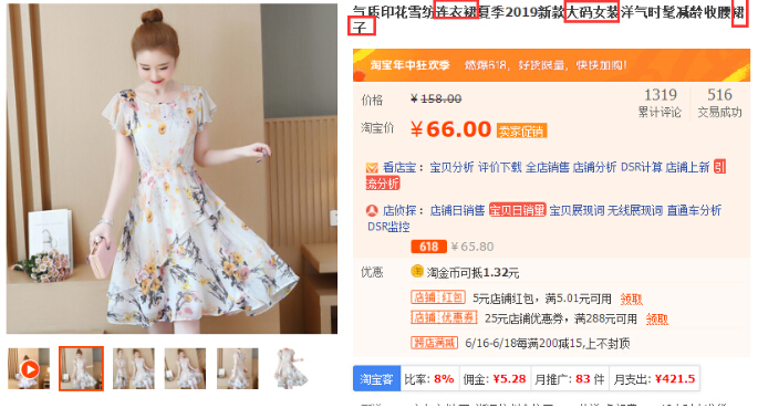 接下来就直接进入实操,上面我们找到一个目标词【网红连衣裙 百搭 显瘦】